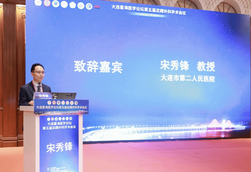大连市第二人民医院手足踝一体化诊疗中心主任宋秀锋在致辞中指出,本次论坛聚焦足踝疾病的诊治、护理与康复能力提升,致力于搭建专业交流平台。他希望大家借助此次机会积极分享经验、携手攻克难题,进一步加强区域间合作,推动技术共享与学科共同进步,为未来足踝医学发展夯实基础,更好地为患者提供服务。