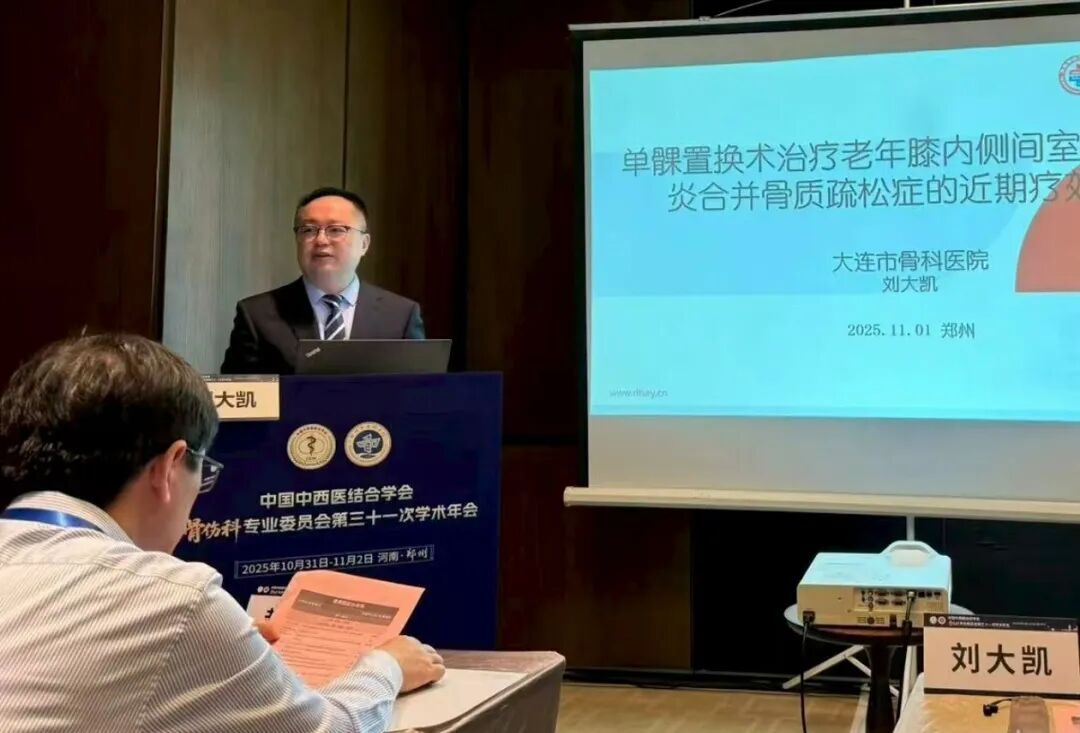 刘大凯主任医师以《单髁置换术治疗老年膝内侧间室骨性关节炎合并骨质疏松症的近期疗效观察》为题,结合老年患者骨骼特性,探索精准置换与骨密度保护的协同方案,为老年骨质疏松患者的保膝治疗提供了切实可行的临床路径。