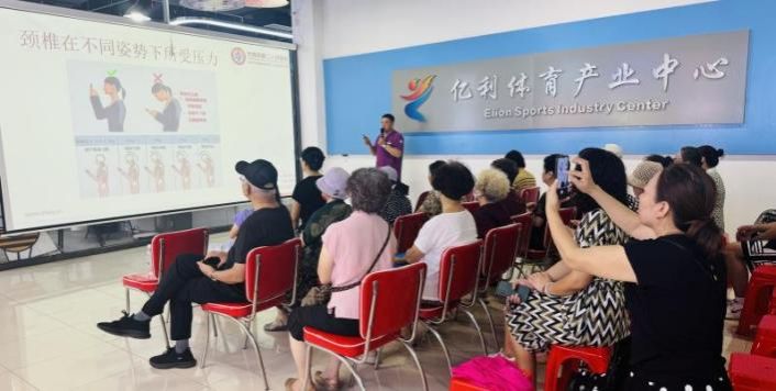 在健康宣讲环节,大连市第二人民医院康复科副主任赵海丰从“脊柱的重要性、为何脊椎会出问题、日常生活调护”三方面进行了深入讲解。同时,通过图片和案例,让社区居民们直观地了解到不良生活工作习惯可能对脊柱造成的危害。